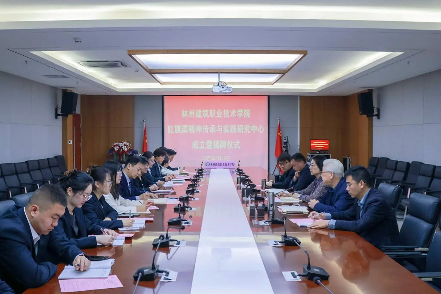 4月15日上午,红旗渠精神传承与实践研究中心成立暨揭牌仪式在学校行政楼211会议室举行。党委书记温亚丽,副校长李文山,副书记、副校长郭鹏,副校长李超杰,科研处副处长邹磊,马克思主义学院院长常红军等出席仪式,马克思主义学院全体教师参加活动。仪式由副书记、副校长郭鹏主持。