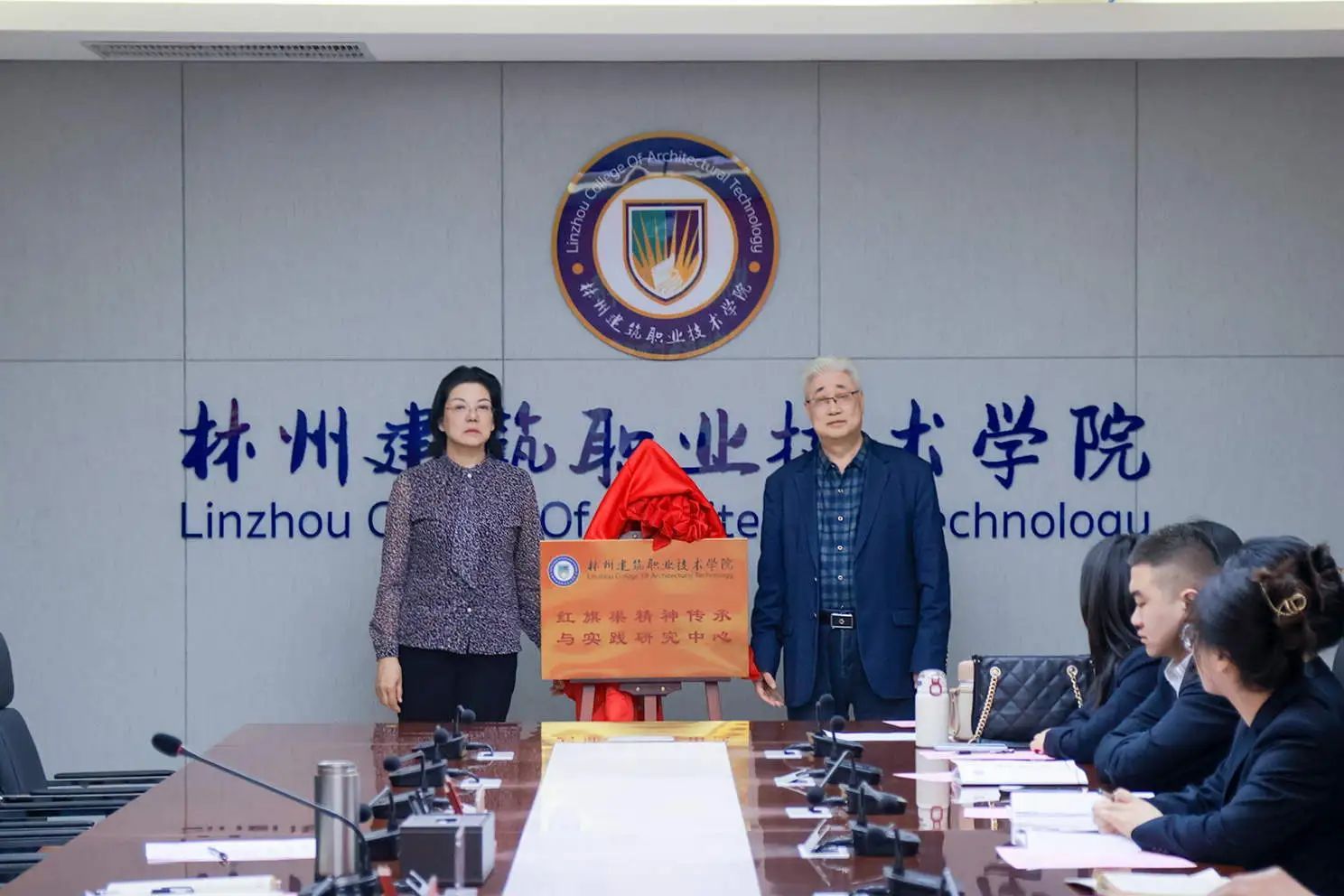 党委书记温亚丽、副校长李文山共同为中心揭牌